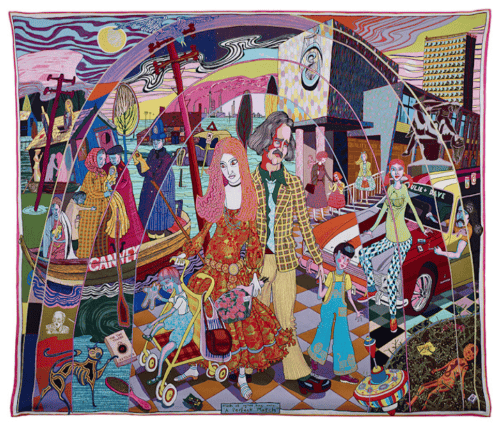 The headline draw is material from A House for Essex, including the full set of large tapestries (one above) telling the story of a fictional life.